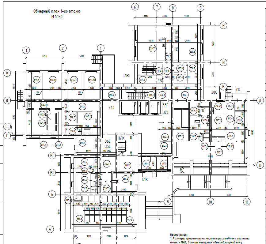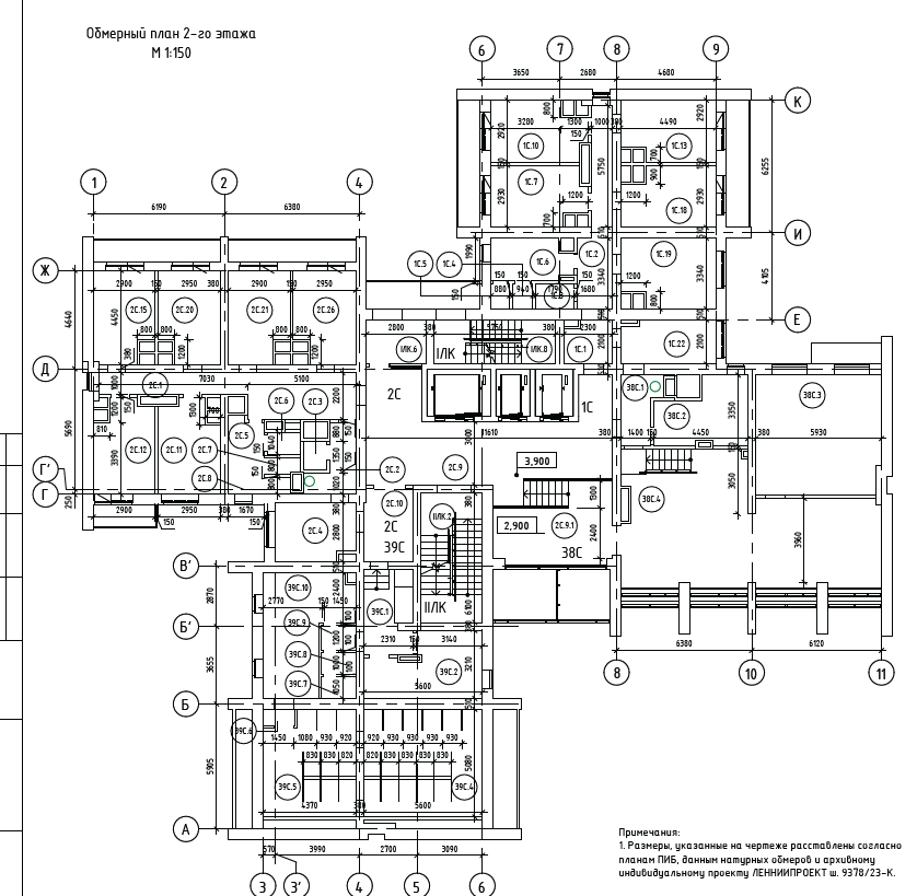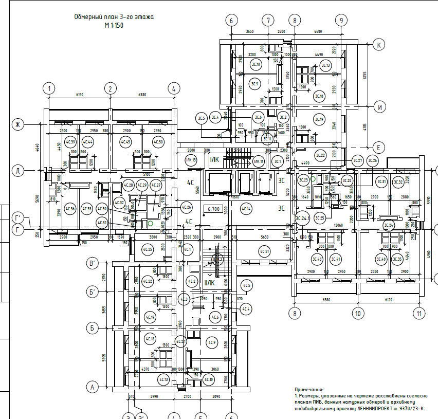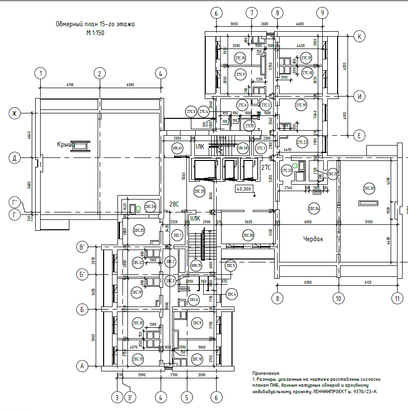 Объект - существующее здание общежития 1980-го года постройки по индивидуальному проекту ЛЕННИИПРОЕКТ ш.9378/23-К «Общежитие на 586 мест с буфетом на 24 места». Объект представляет собой разноуровневое 13-14-15-ти этажное кирпичное здание. Кроме того, имеет технический этаж и подвал. В плане имеет сложную форму с выступающими объемами, образованную четырьмя секциями, расположенными с северной, западной, южной и восточной сторон от пространства общего назначения – лестнично-лифтового холла. Фундамент здания железобетонный сборный ленточный из фундаментных подушек и стеновых блоков. Междуэтажные перекрытия из сборных железобетонных многопустотных и плоских плит. Кровля плоская рулонная по покрытию из сборных железобетонных плит. Несущие и ограждающие стены кирпичные, внутренние перегородки помещений – из гипсокартонных листов и деревянных материалов. Прочность, пространственная жесткость, устойчивость и геометрическая неизменяемость здания обеспечивается совместной работой конструкции фундамента, стен, конструкций перекрытий.