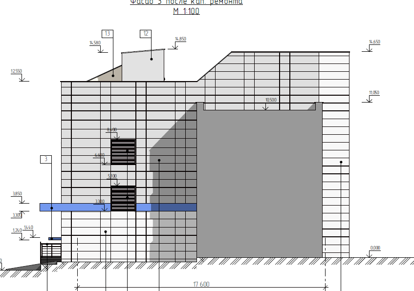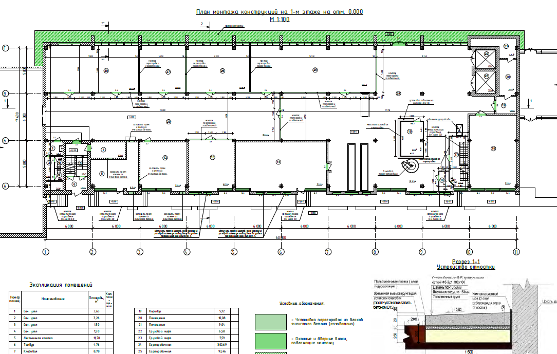 Габаритные размеры в осях – 104,0* 42,1 м. Срок ввода в эксплуатацию – 1981г. Здание запроектировано по типовому проекту №601-3 «Железнодорожный сортировочный почтамт с обменом до 5000 посылок в сутки» от 1965г, разработанный институтом «Гипросвязь». Конструктивная система здания литеры "Б" полный сборный железобетонный каркас и самонесущие наружные стены. Основанием здания являются: известняк от желто-бурого до желто-белого, кавернозный, средней крепкости, трещиноватый, с расчетным сопротивлением грунта до 3 кг/м2. Фундамент здания литеры "Б" сборные железобетонные, стаканного типа с рандбалками под наружные стены серии ИИ-22-2, альбом 1-64, стены подвала из блоков, серии ИИ -03 -02, альбом 1-64/13,18. Каркас, сетка 6х6м, выполнен по серии ИИ-20. Поперечная рама выполнена из колонн (Серия ИИ - 22- 2, марка К-15-1 и К-16-1) и ригеля обратного таврового сечения (Серия ИИ-23-1/2,4 марка Б2-1 и Б3-1). Стены выполнены из мелкоштучного камня-известняка М50 и добраны местами из глиняного полнотелого кирпича с облицовкой из глиняного полнотелого кирпича. Наружные стены толщиной 500 мм, внутренние - 400 мм. Вдоль оси Г, с шагом каркаса, в створе колонн выполнены пилястры. Наружная отделка здания выполнена из известковой плитки инкерманского месторождения размером 400х400 мм. Перекрытие здания выполнено сборным железобетонными ребристыми плитами по серии ИИ-24-1. Кровля плоская с покрытием из рулонного материала на битумной основе. Утеплитель–теплоизоляционно-конструкционный пенобетон, разуклонка выполнена боем ракушки и керамзитовым гравием. Лестницы – сборные железобетонные по серии ИИ-03-02, альбом 20а-90/7, 18, 22, марка ЛМ-33-14, ЛП-28-13.