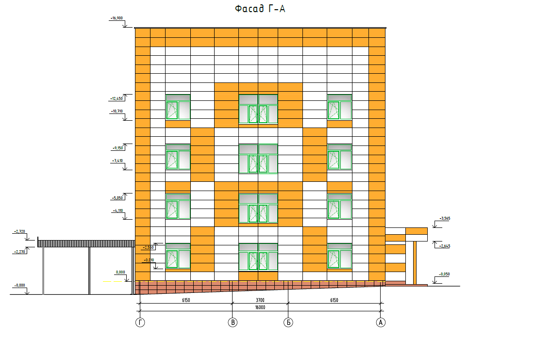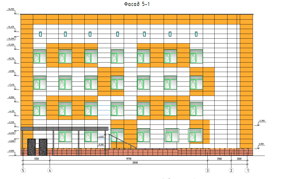 Здание женской консультации имеет правильную прямоугольную форму с размерами в плане – 27,100 * 16,600 м и выступающий лифтовой блок с размерами в плане 8,700*2,000 м. Здание выполнено по типовому проекту 254-4-5, с подвалом и плоской неэксплуатируемой кровлей. Высота подвального помещения – 2,90 м. Высота типового этажа – 3,35 м. Высота технического этажа – 2,55 м. Фундаменты здания выполнены из железобетонных блоков ФБС толщиной 600 мм. Конструктивная схема здания представлена наружными несущими стенами и внутренними несущими стенами. Межэтажные перекрытия здания выполнены сборными из железобетонных плит с опиранием на несущие стены. Прочность, устойчивость и пространственная жесткость обеспечивается совместной работой наружных стен, внутренних стен и перекрытия. Наружные стены выполнены из пустотелого кирпича толщиной 640 мм. Внутренние стены и перегородки выполнены из пустотелого кирпича толщиной 380мм и 120 мм. Оконные конструкции выполнены из ПВХ профиля со светопрозрачной частью из клееного двухкамерного энергосберегающего стеклопакета.