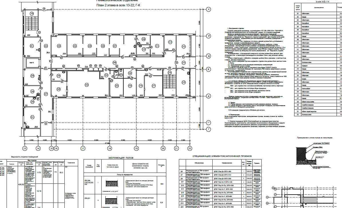 Типовой проект 252-1-45 Главный корпус участковой больницы на 150 коек с поликлиникой на 200 посещений в смену, для строительства в 1В климатическом подрайоне, 2 и 3 климатических районах.